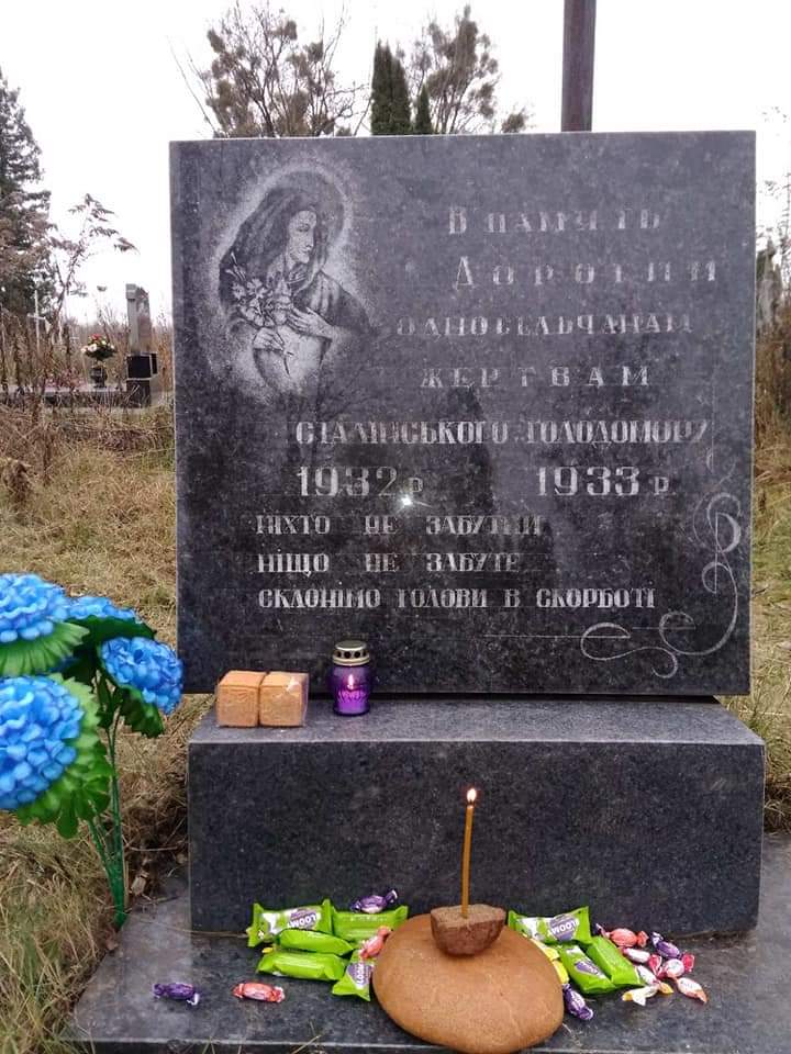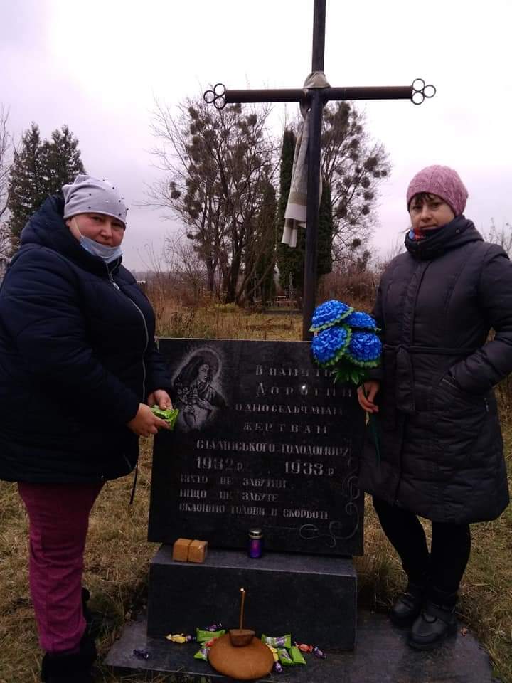 Біля пам'ятного знака жертв Голодомору 1932-1933р. на місцевому кладовищі працівники культури вшанували пам'ять заморених голодом хвилиною мовчання та запалили "Свічку пам'яті".