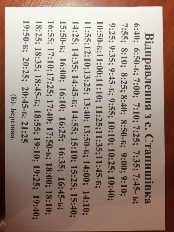 Оприлюднюємо графік руху маршруту №121 Станишівка-Глибочиця,  відправлення з кінцевої с.Станишівка, наданого перевізником Воробйовою Н.П.