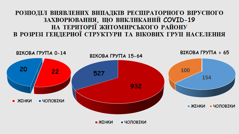За період спостереження (з квітня 2020 року), станом на 09 грудня, у Житомирському районі зафіксовано 1760 випадків захворювання на коронавірусну хворобу COVID-19. З яких 165 медичних працівників.