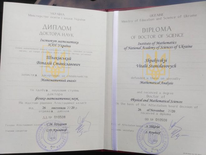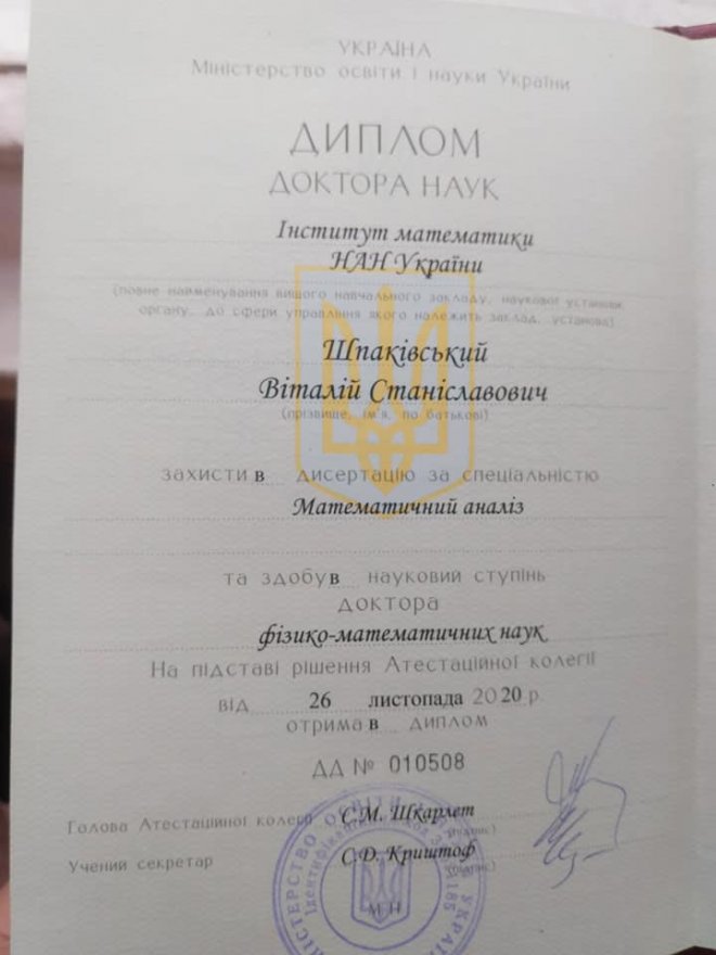 2. Дивує лише позиція самого В.Шпаківського, якому напередодні – 26 листопада 2020 року – присвоєно науковий ступінь ДОКТОРА ФІЗИКО-МАТЕМАТИЧНИХ НАУК.