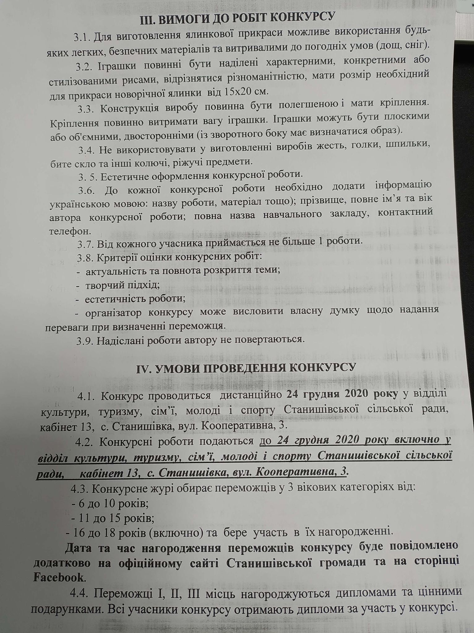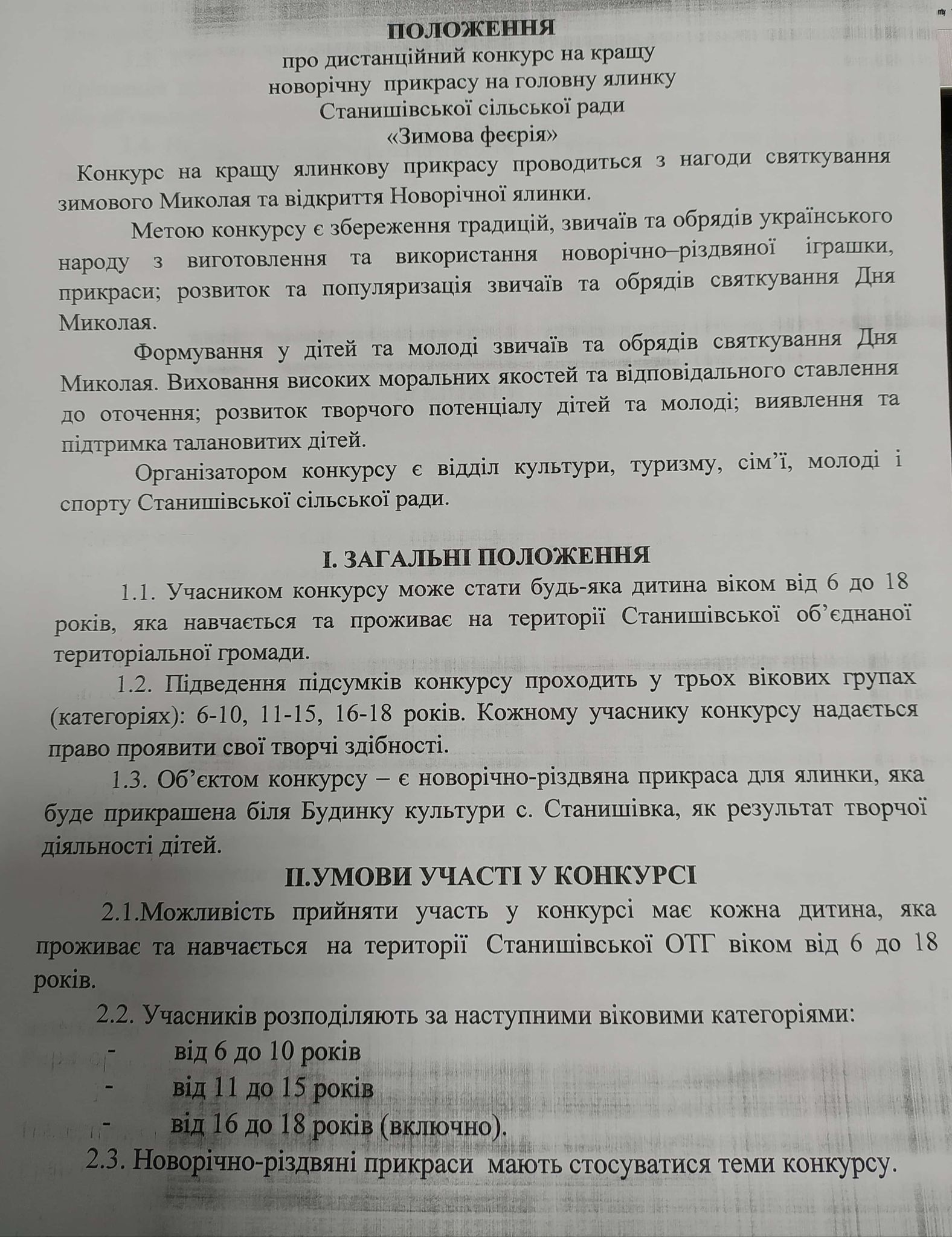 УВАГА КОНКУРС! На кращу новорічну прикрасу на головну ялинку Станишівської сільської ради «Зимова феєрія»