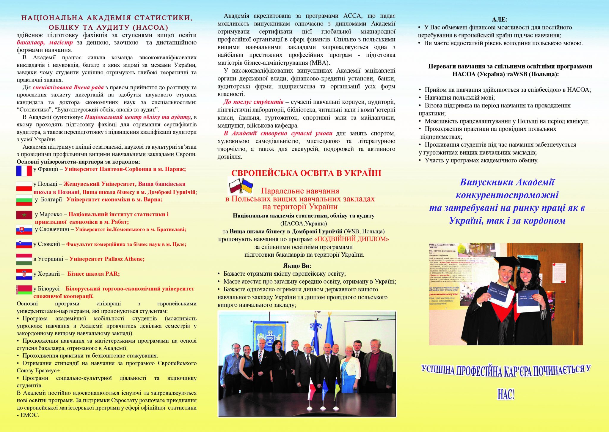 Національна академія статистики, обліку та аудиту (НАСОА) – державний вищий навчальний заклад IV рівня акредитації запрошує абітурієнтів на навчання на 2021/22 навчальний рік для здобуття освіти європейського рівня.