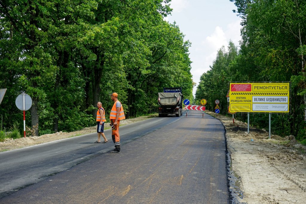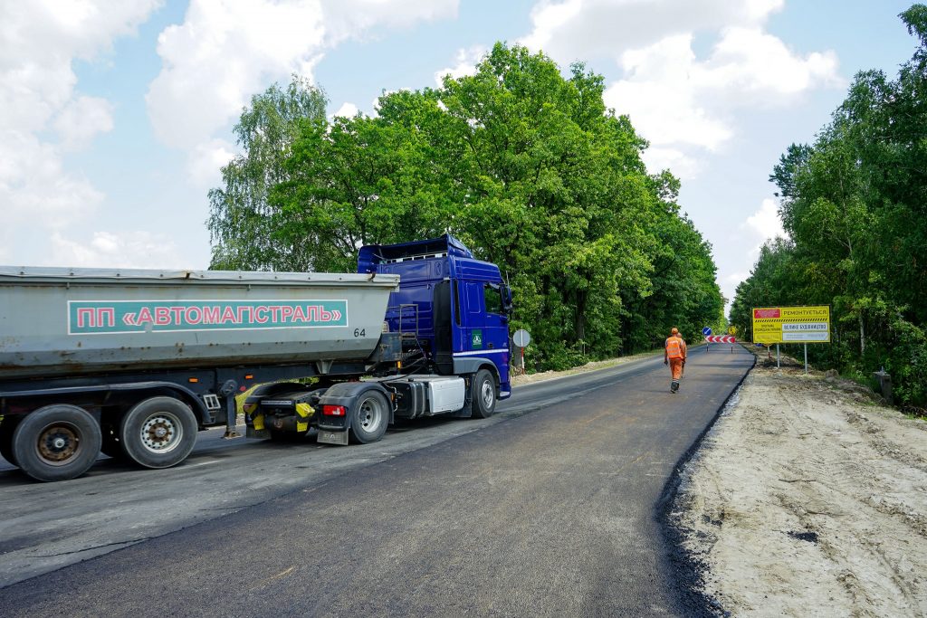 Зараз на ділянці протяжністю близько 9 км триває облаштування верхнього слою асфальтного покриття.