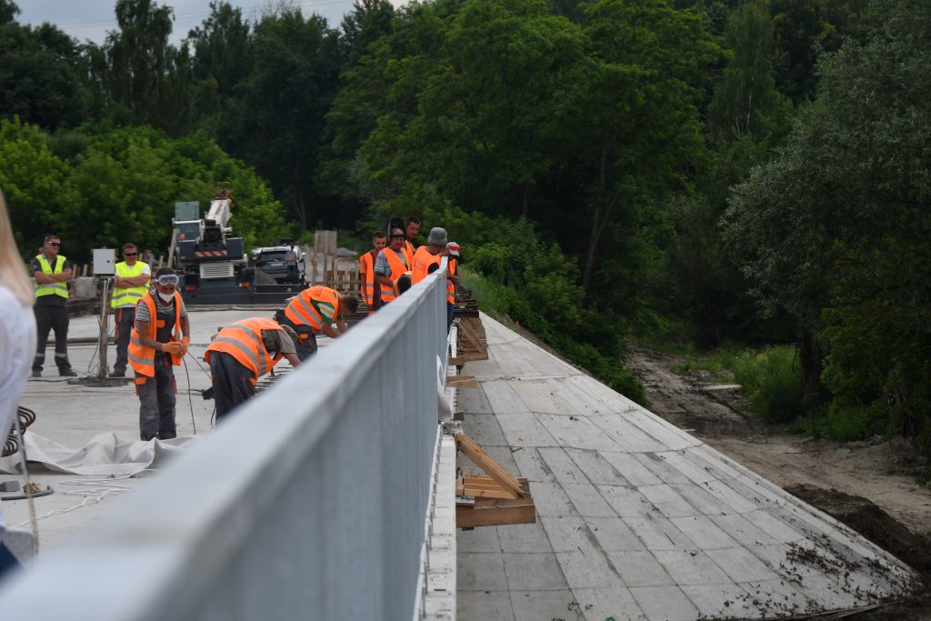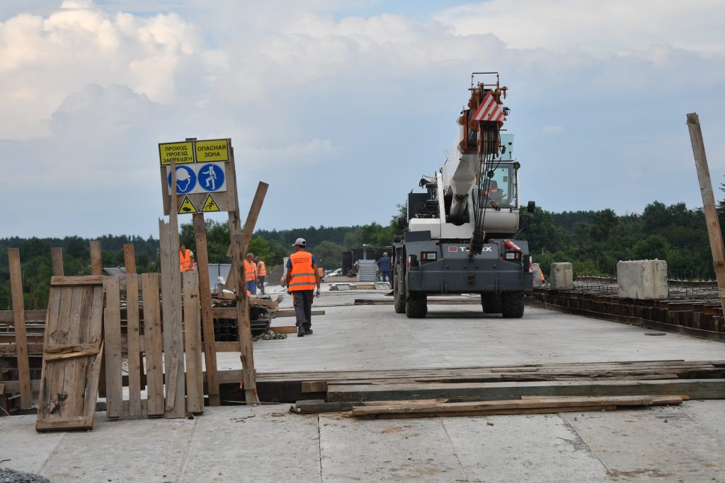 На даний час проводяться роботи з влаштування деформаційних швів – 49,2 п.м., укріплення конусів та роботи на підходах до мосту.