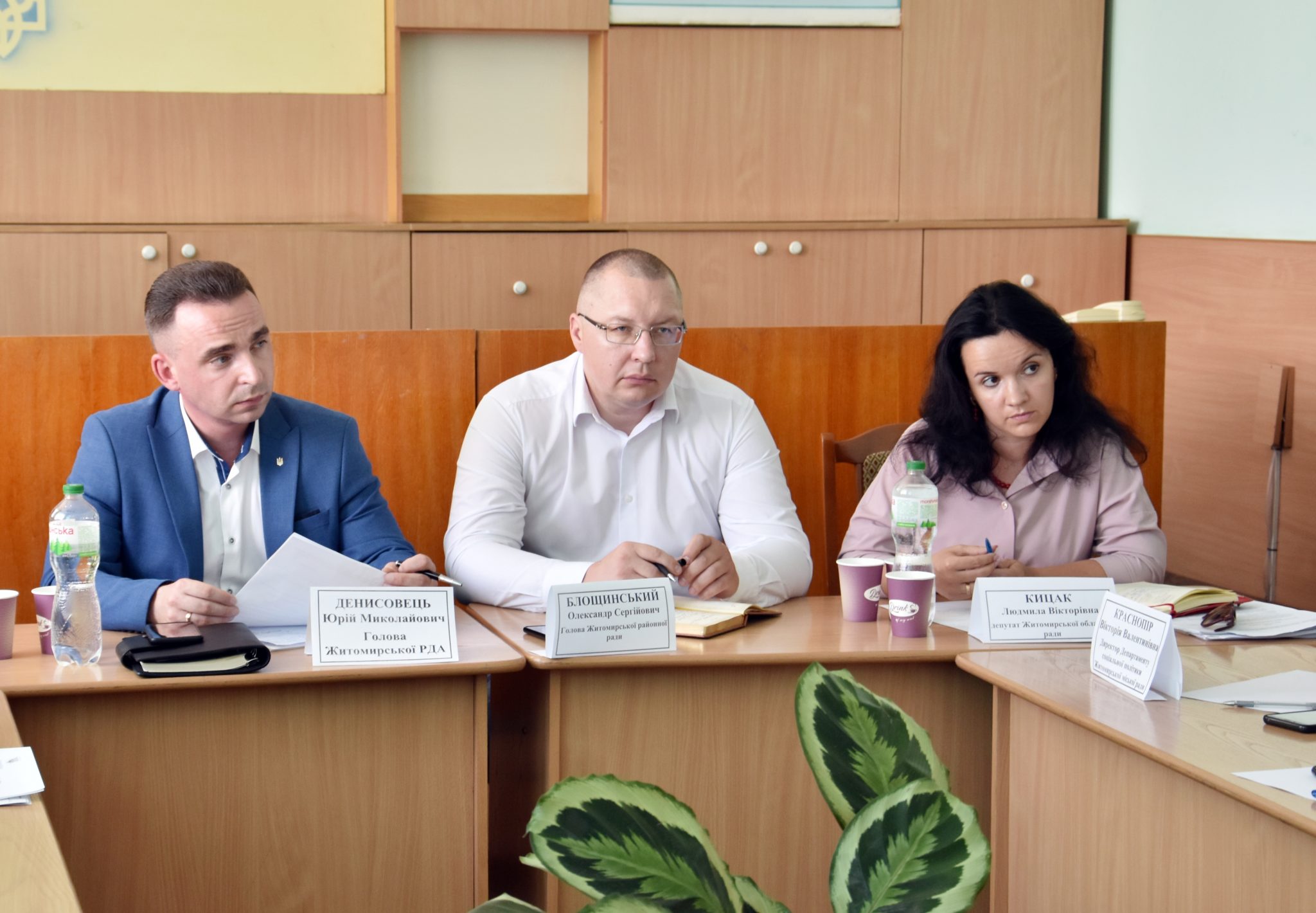 Сьогодні, 13 липня, голова Житомирської райдержадміністрації Юрій Денисовець вдруге зустрівся з представниками Новогуйвинської селищної ради, Березівської, Глибочицької, Оліївської, Станишівської сільських рад, громадських організацій задля вирішення наболілої проблеми – створення на території району установи з надання базової соціальної послуги денного догляду для дітей та молоді зі складними порушеннями розвитку.