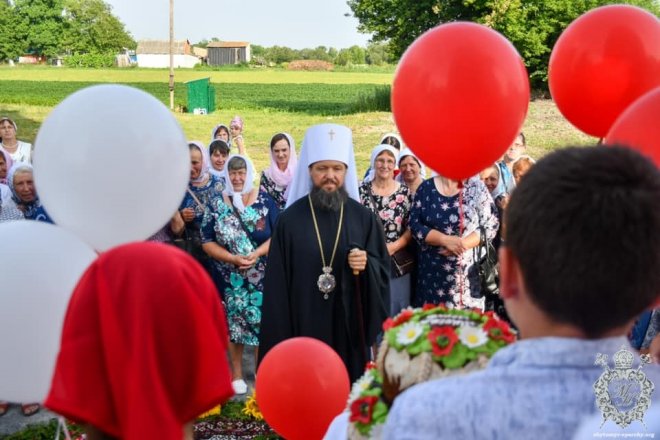 Митрополита Никодима урочисто зустрів настоятель храму протоієрей Олександр Литвинюк із численними парафіянами, які прийшли на освячення нового храму.