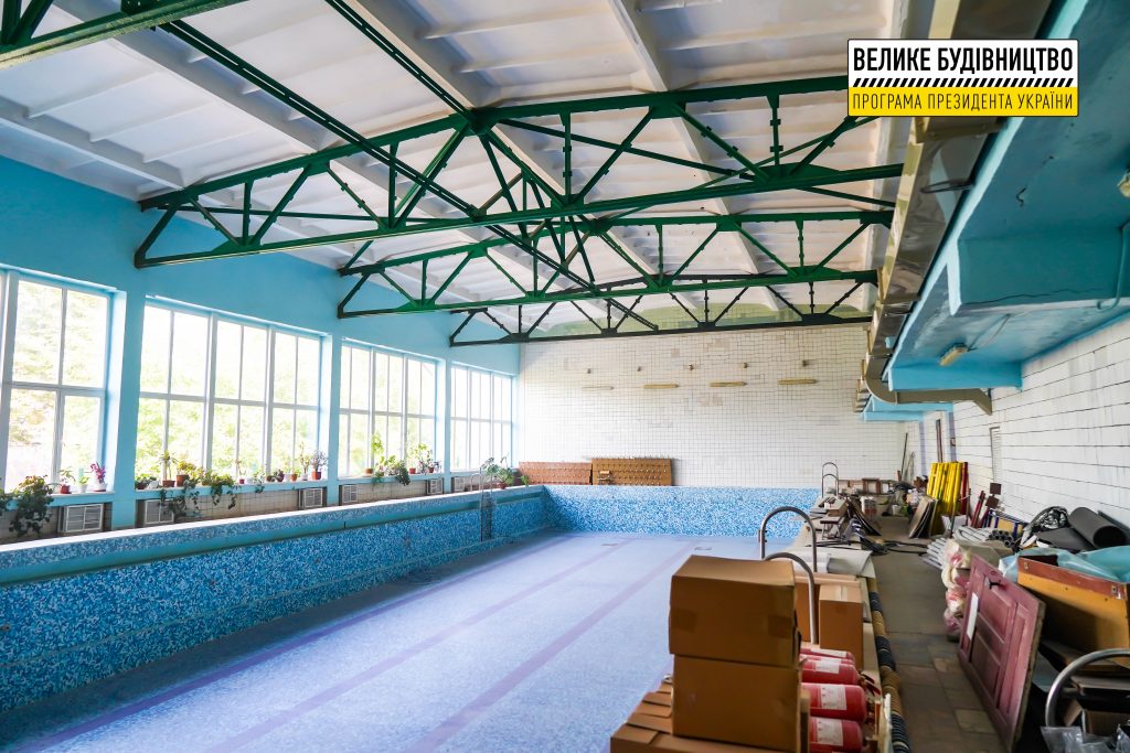 Наразі тривають роботи з капітального ремонту внутрішніх приміщень та приміщень малого басейну.