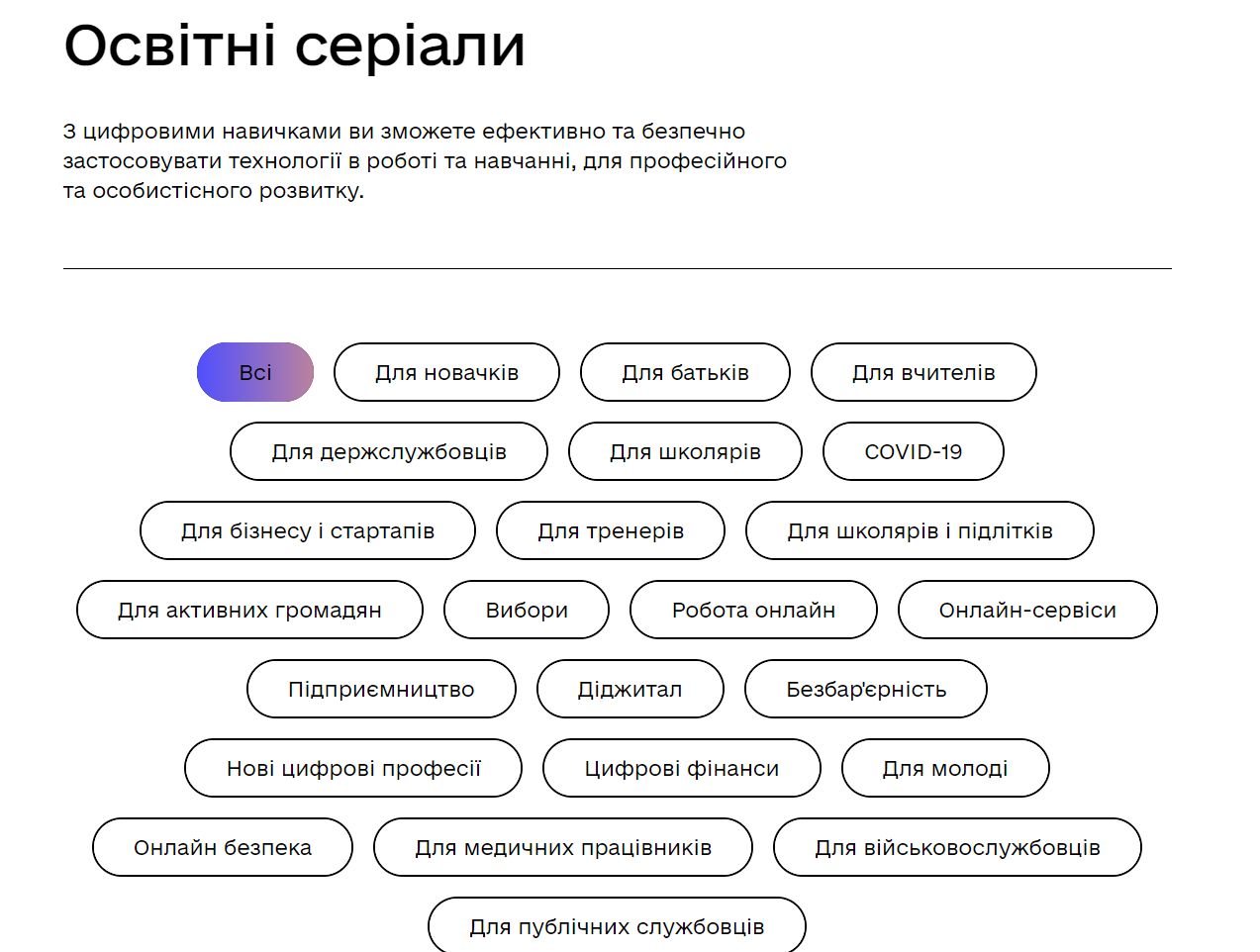 На онлайн-платформі кожен громадянин може безкоштовно опанувати цифрові навички за новим сучасним форматом – освітні серіали. Наразі, на платформі доступний новий онлайн серіал «Як громаді стати цифровою»