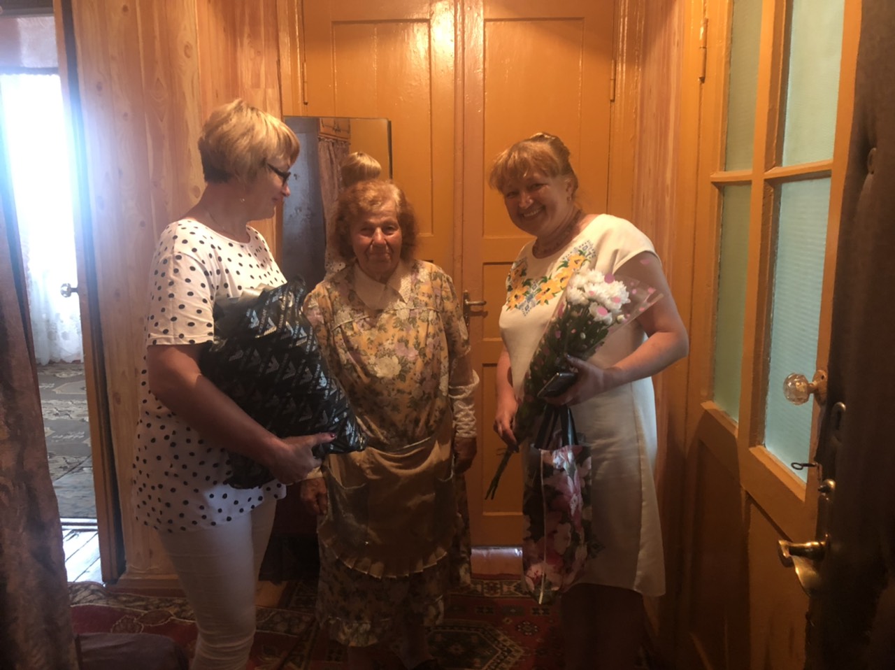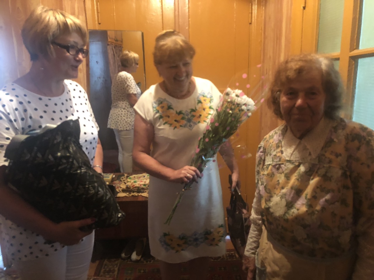 Заступник директора КУ «Центр надання соціальних послуг» Новогуйвинської селищної ради Мудренок Н. М. та староста смт Гуйва Гончаренко З.Г. привітали іменинницю з Днем народження та побажали довгих років, міцного здоров’я, та щасливого довголіття.