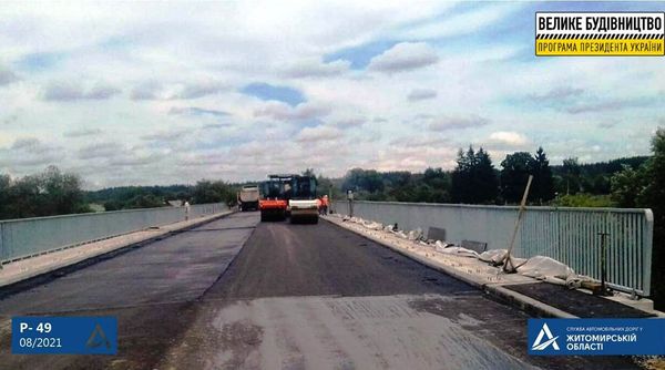 Про це повідомляє Служба автомобільних доріг у Житомирській області. Роботи з капітального ремонту мосту через річку Случ, що на км 92+351 а/д Р-49 Васьковичі – Шепетівка, реалізовуються у рамках програми Президента України «Велике будівництво».