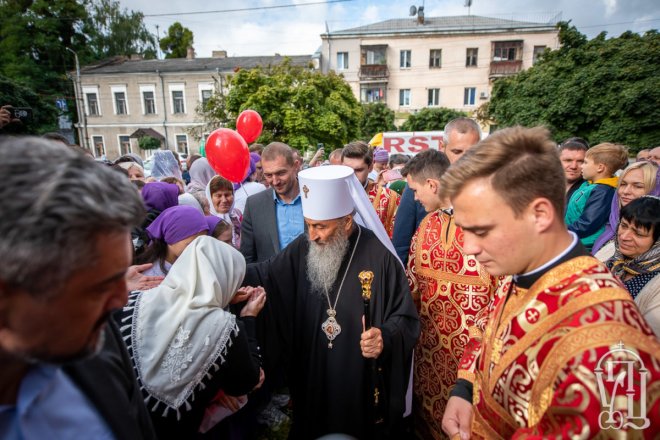 Після відпусту виголосили многоліття митрополиту Никодиму та митрополиту Антонію, який святкує сьогодні 54-річчя. Блаженніший владика виголосив вітальне слово та подякував за труди керуючому Житомирською єпархією. Владика Никодим висловив вдячність Предстоятелю за візит, а вірянам – за вірність Церкві та Блаженнішому Митрополиту Онуфрію, і підніс у дар архіпастирю ікону святителя Євменія.