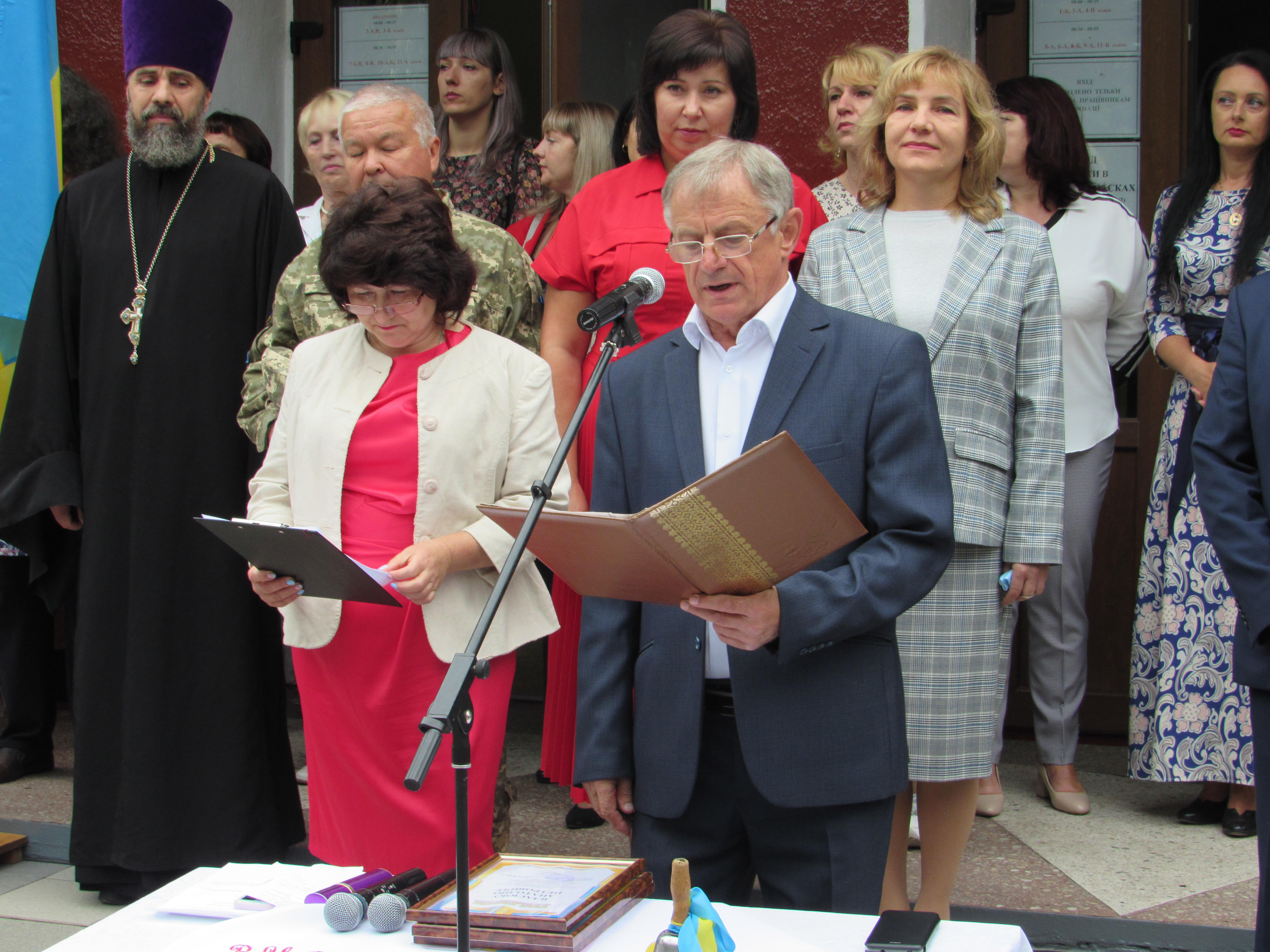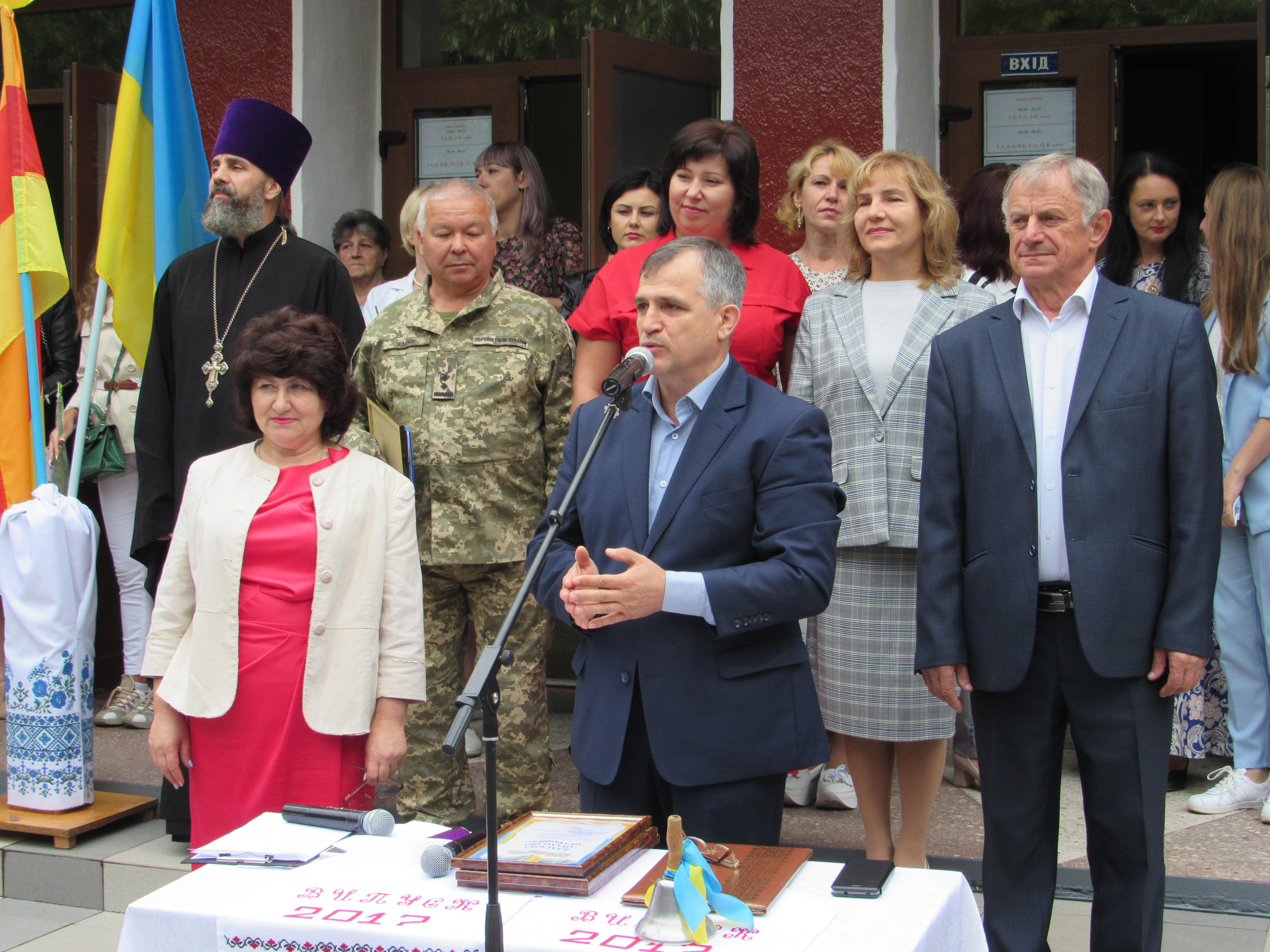 З вітальним словом до присутніх звернулись директор гімназії Власюк А.П. і гості свята: Стах В.М., заступник селищного голови, Жданов А.О., тво заступника командира 39 бригади тактичної авіації, Отець Дмитрій.
