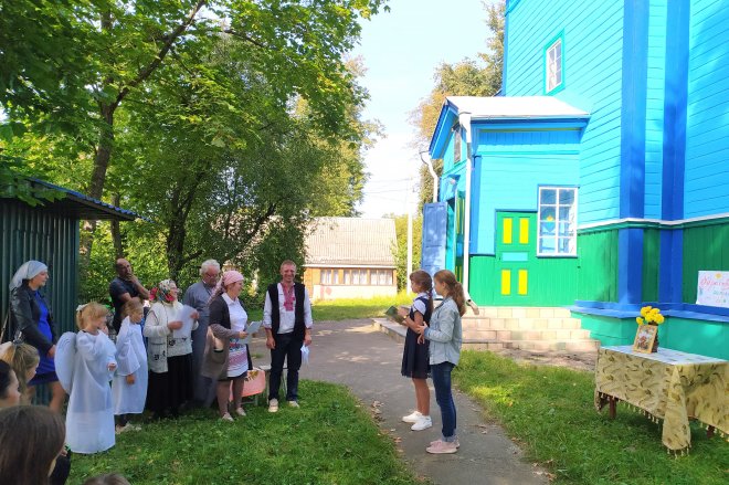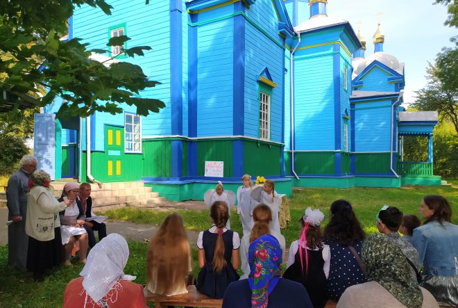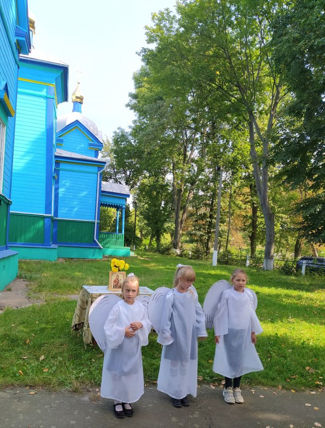 Діти на чолі з керівником Недільної школи Ольгою Сич підготували цікаву концертну програму з піснями, віршами, театральними сценками. А також присутнім зачитали лекцію про важливість пізнання Бога. Юні учасники заходу в нагороду за активну підготовку до свята отримали іконки від настоятеля храму отця Ніколая та смаколики від Громадської спілки «Миряни».