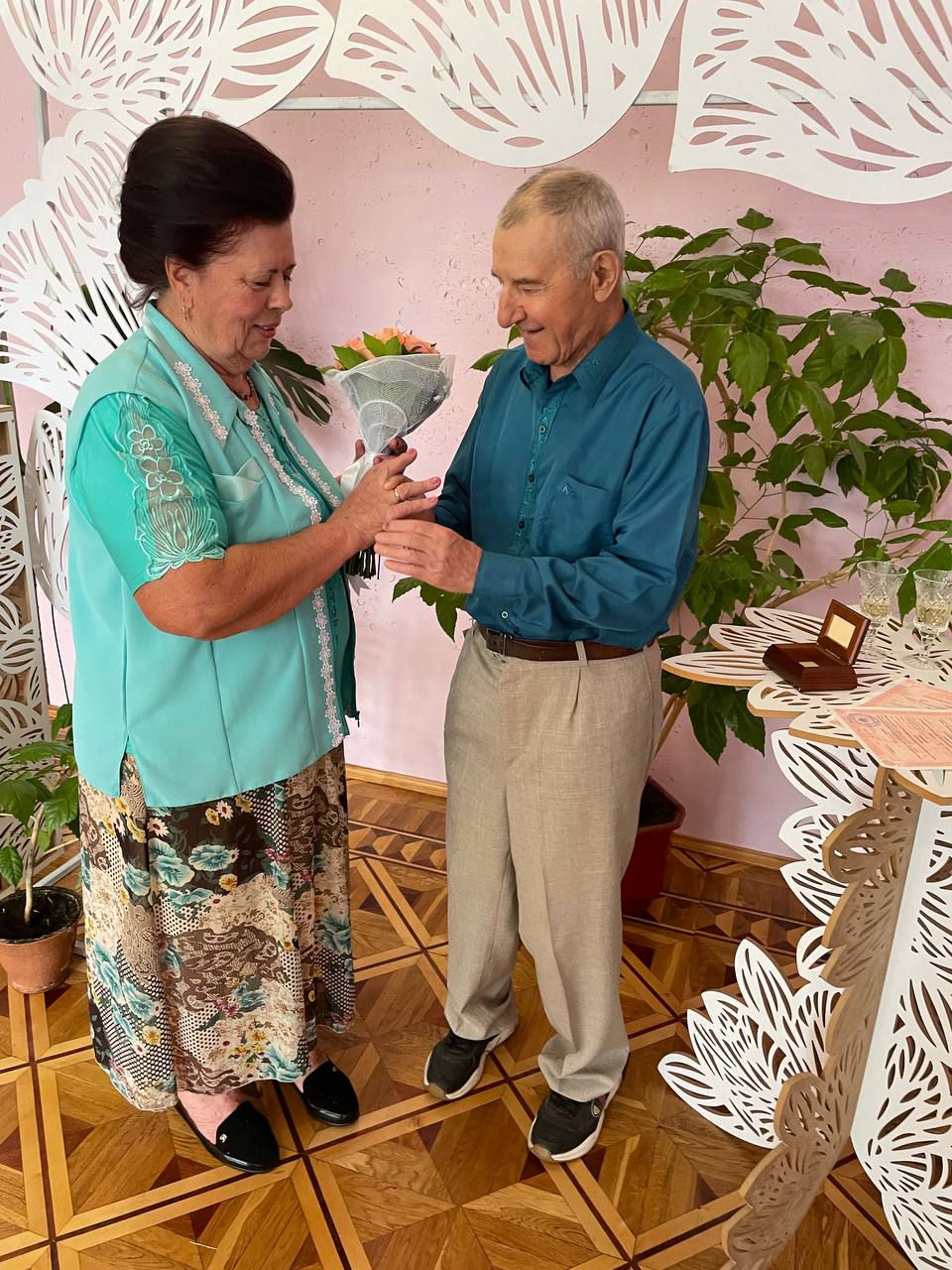 Сьогодні, 15 вересня 2021 року в Новогуйвинській селищній раді було зареєстровано два шлюби: один з яких ювілейний, а інший – шлюб найстаршої пари: нареченому – 82 роки, нареченій -70.