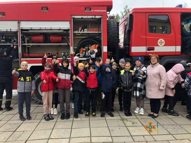 Рятувальники розповіли дітям про основні правила безпечної життєдіяльності: як поводитися під час різноманітних надзвичайних подій та ситуацій, у тому числі і при виявленні підозрілих чи вибухонебезпечних предметів. Дітлахи із задоволенням спілкувалися з рятувальниками, жваво відповідали на запитання, розповідали за яким саме номером телефонувати у разі виникнення пожежі та як саме потрібно себе поводити аби біди взагалі не трапилося.