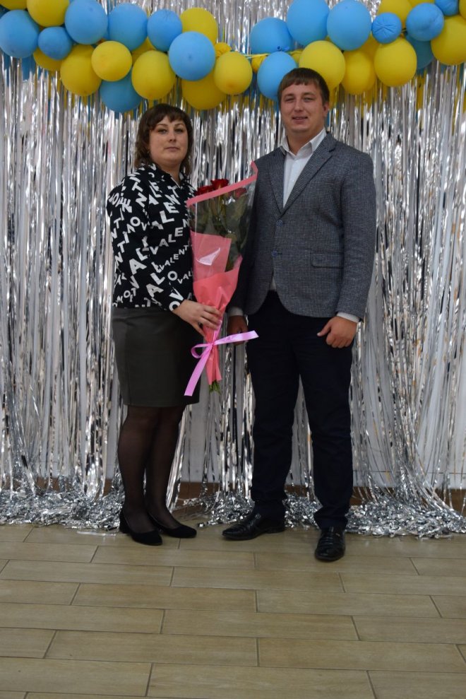 Директор ліцею Світлана Сич виховала багатьох гідних громадян, серед них і Оліївський сільський голова Анатолій Мельниченко (на верхньому фото вони разом).