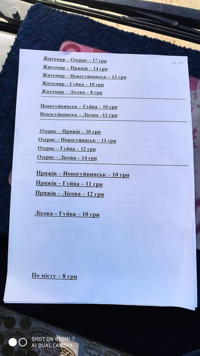 Зокрема, проїзд із Житомира до Озерного вже 17 грн, Житомир – Пряжів коштує 14 грн, із Житомира до Новогуйвинська – 13 грн, до Гуйви – 10 грн.