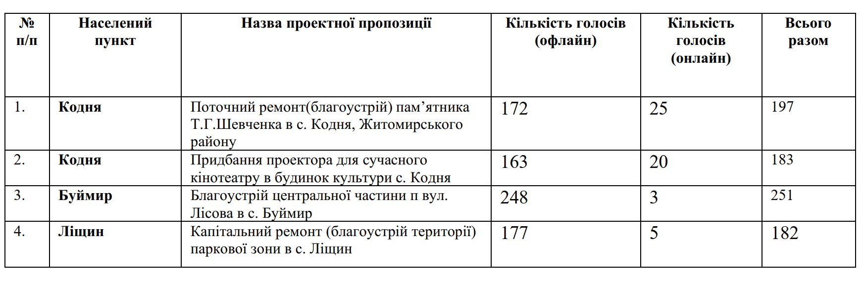 За результатами голосування за проєкти Бюджету участі Станишівської сільської ради у 2021 році обрано 4 проєкти-переможці.