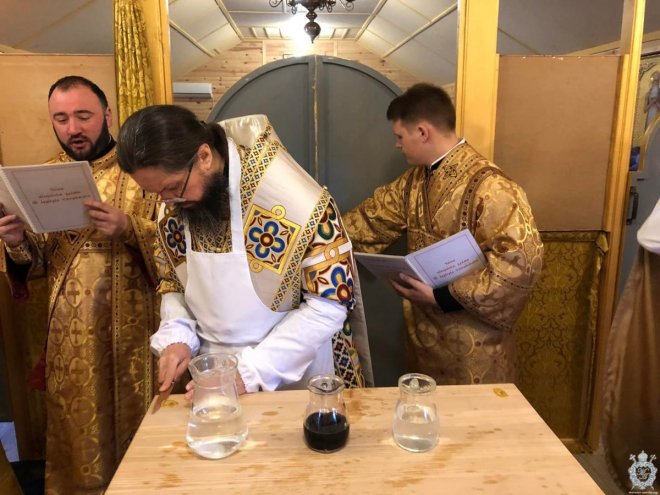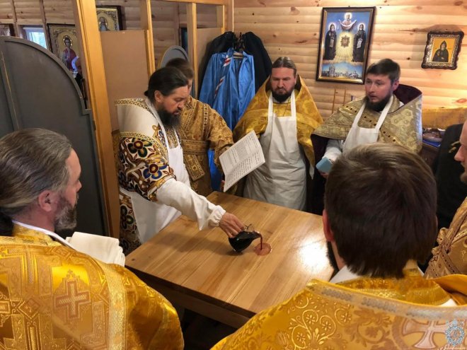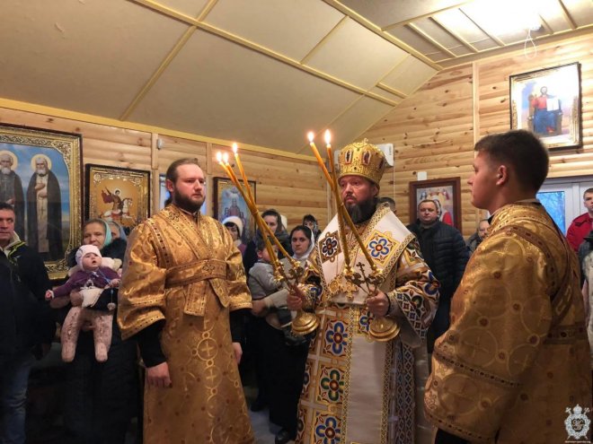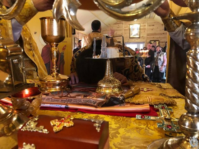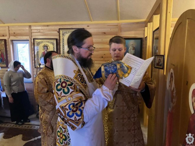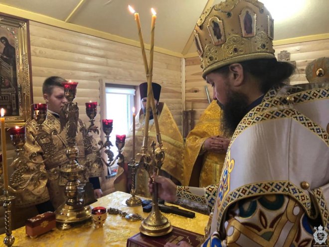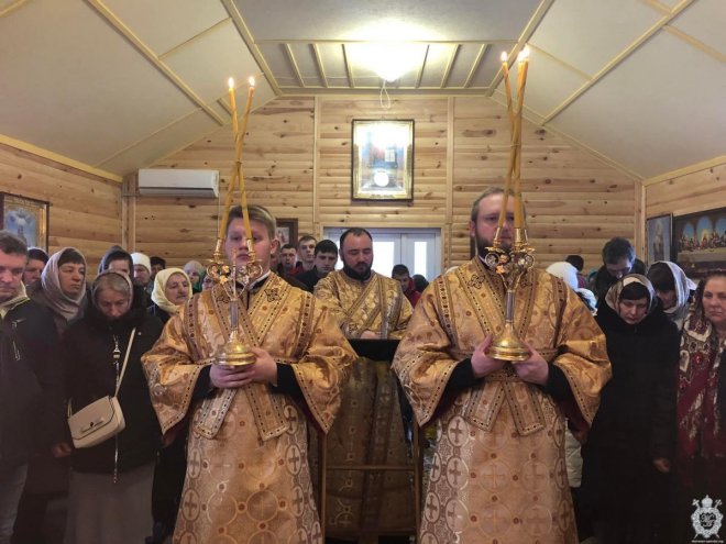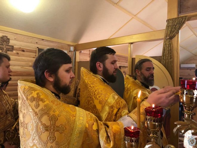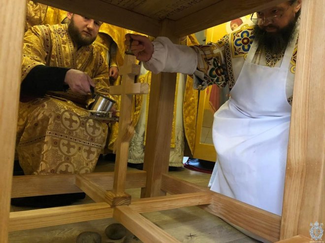 Після чину освячення Владика звершив першу святкову Божественну літургію. Його Високопреосвященству співслужив благочинний Житомирського району протоієрей Димитрій Новіцький, настоятель парафії та духовенство, що прибули на молитву.