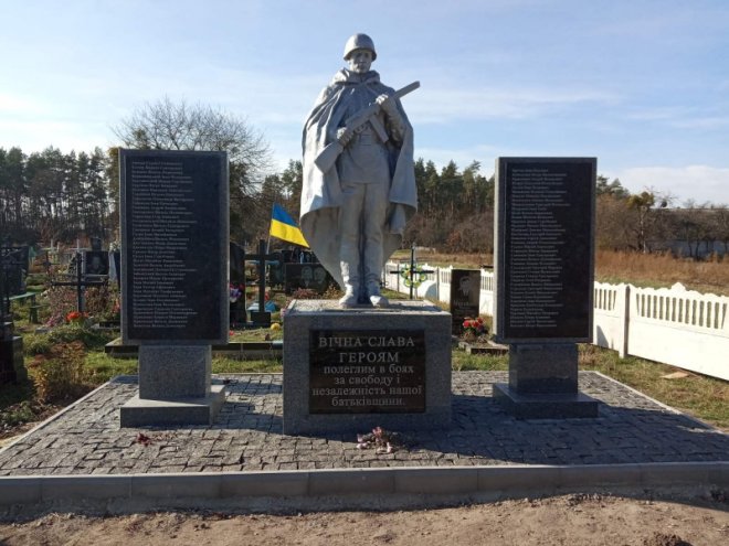 У цій могилі похований Герой Радянського Союзу Літвінов Павло Семенович, який загинув у бою біля села в листопаді 1943 року. В 1957 році райдорвідділ спорудив скульптурний бетонний пам’ятник (на п’єдесталі фігура солдата з автоматом біля обеліска). В 1983 році виготовлена меморіальна дошка з написом „В этой братской могиле похоронен Герой Советского Союза Литвинов Павел Семёнович».
