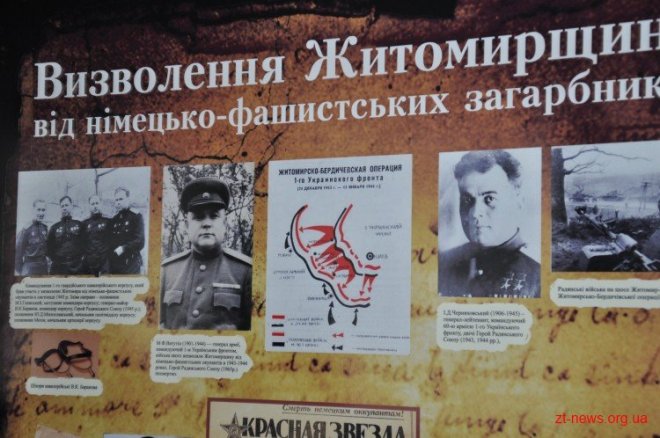 Дорогою ціною дісталося нашому народу визволення Житомирщини. Понад 95 тисяч воїнів полягли смертю героїв на поліській землі. За героїзм, виявлений під час захисту й визволення Житомирщини, 50 воїнів-визволителів нагороджені званням Героя Радянського Союзу.