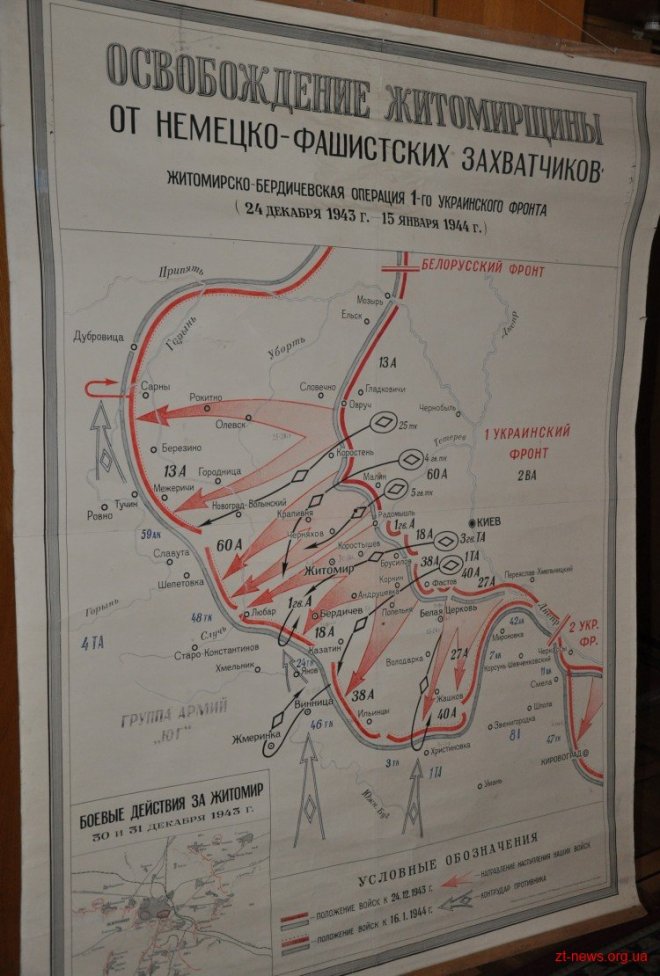 14 січня 1944 року в результаті завершення Житомирсько-Бердичівської наступальної операції, через 918 днів окупації, Житомирська область була повністю визволена.