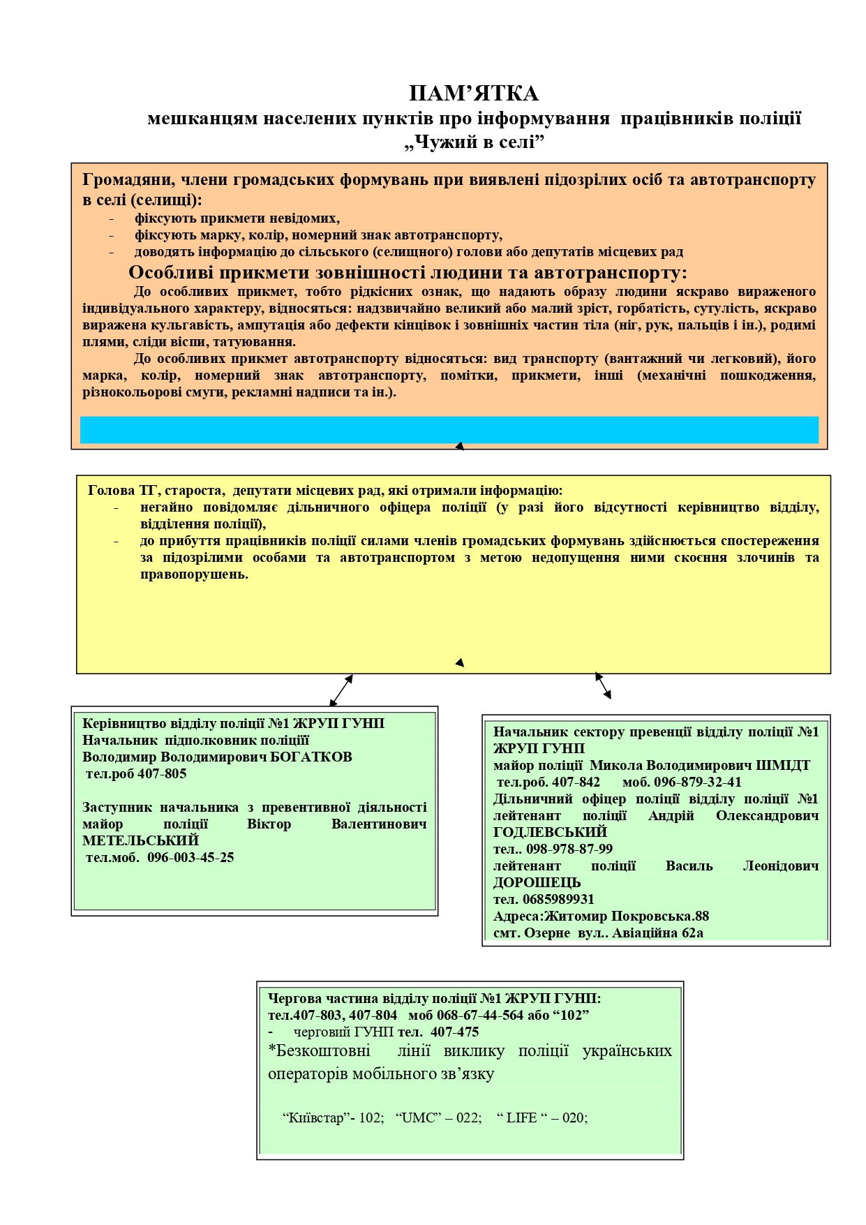 ПАМ’ЯТКА мешканцям населених пунктів про інформування працівників поліції „Чужий в селі” Новогуйвинська селищна рада 20-01-2022 13:20 Новина з сайту: Новогуйвинська селищна рада Джерело Поділитись дописом Опубліковано в Новогуйвинська селищна рада Prostir EU Читайте також з поточної категорії Новогуйвинська селищна радаВсе в категорії Новогуйвинська селищна рада »До уваги мешканців!До уваги мешканців!Звернення секретаря селищної ради до жителів громадиЗвернення секретаря селищної ради до жителів громадиПро початок процедури проведення громадських слухань щодо врахування громадських інтересів під час розроблення ДП території для реконструкції житлової квартири під приміщення аптеки за адресою: вул. Авіаційна, буд. 41, кв. 50, смт ОзернеПро початок процедури проведення громадських слухань щодо врахування громадських інтересів під час розроблення ДП території для реконструкції житлової квартири під приміщення аптеки за адресою: вул. Авіаційна, буд. 41, кв. 50, смт ОзернеПро початок процедури проведення громадських слухань щодо врахування громадських інтересів під час корегування детального плану території, що розроблений в с. Двірець по вул. Молодіжній Житомирського району Житомирської області, щодо території земельПро початок процедури проведення громадських слухань щодо врахування громадських інтересів під час корегування детального плану території, що розроблений в с. Двірець по вул. Молодіжній Житомирського району Житомирської області, щодо території земель