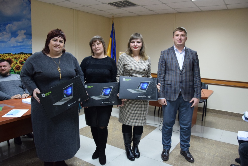 Анатолій Мельниченко під час засідання вручив директорам навчальних закладів громади ноутбуки для вчителів. Їх в кількості 17 штук громада отримала завдяки співпраці з Житомирською ОДА шляхом співфінансування.