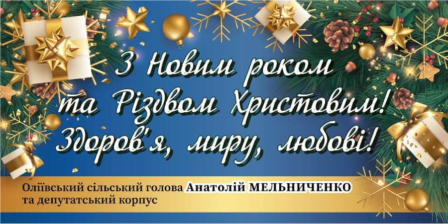 Шановні жителі Оліївської громади! У ці передноворічні дні хочу побажати всім вам міцного здоров'я, радості та добробуту! А нашій громаді та Україні – миру і процвітання! Нехай прийдешній рік принесе нові звершення, нові надії і втілення мрій! З Новим роком та Різдвом Христовим!