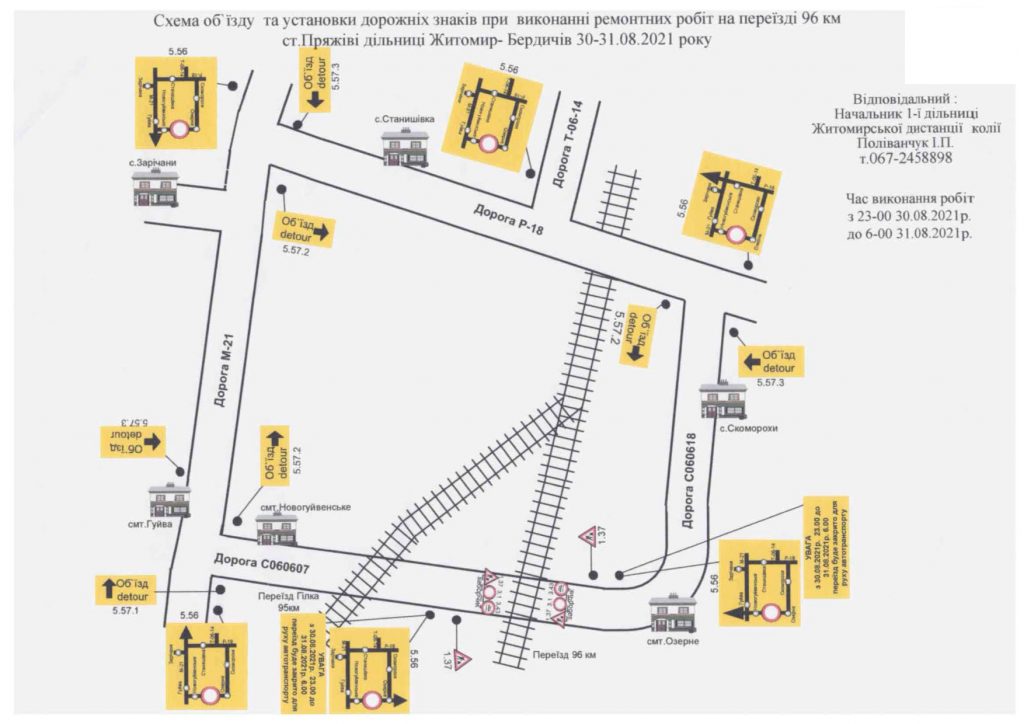 Згідно повідомлення АТ "Укрзалізниця", в зв'язку з виконанням ремонтних робіт на переїзді 96 км станція Пряжів дільниці Житомир- Бердичів, який перетинає автомобільна дорога С-060607 км 5+250…