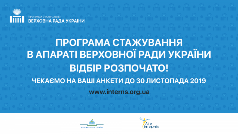 Громадська організація “Ліга інтернів” спільно з Верховною Радою України оголошують конкурс на участь у Програмі стажування молоді в Апараті Верховної Ради. Стажування триватиме з січня…