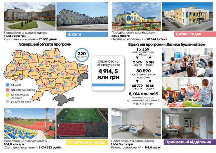 У 2020 році Програма Президента «Велике будівництво», яку реалізує Мінрегіон у співпраці з місцевою владою, в частині 100 шкіл/100 дитячих садочків/100 спортивних об’єктів повністю виконана…