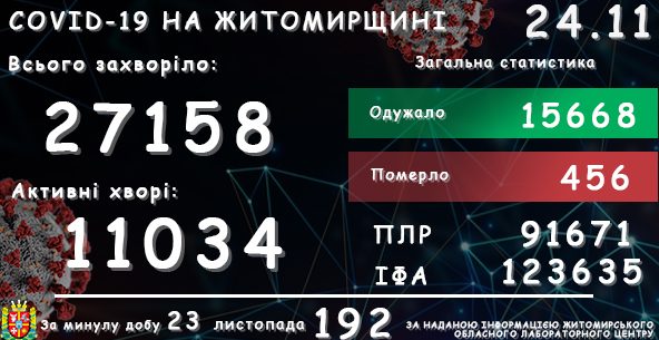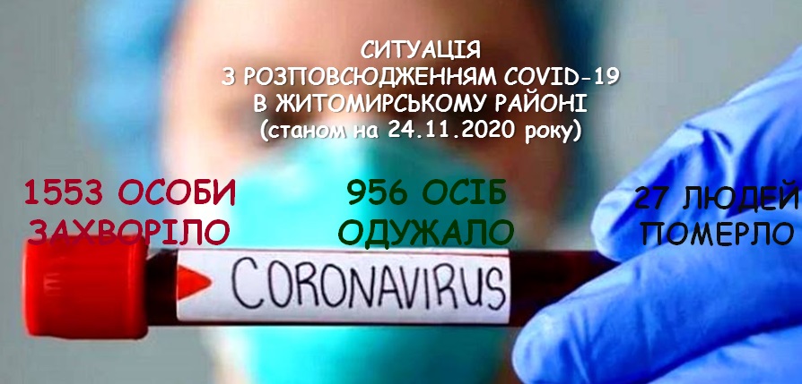 За період спостереження (з квітня 2020 року), станом на 24 листопада, у Житомирському районі зафіксовано 1553 випадків захворювання на коронавірусну хворобу COVID-19. З яких 145…