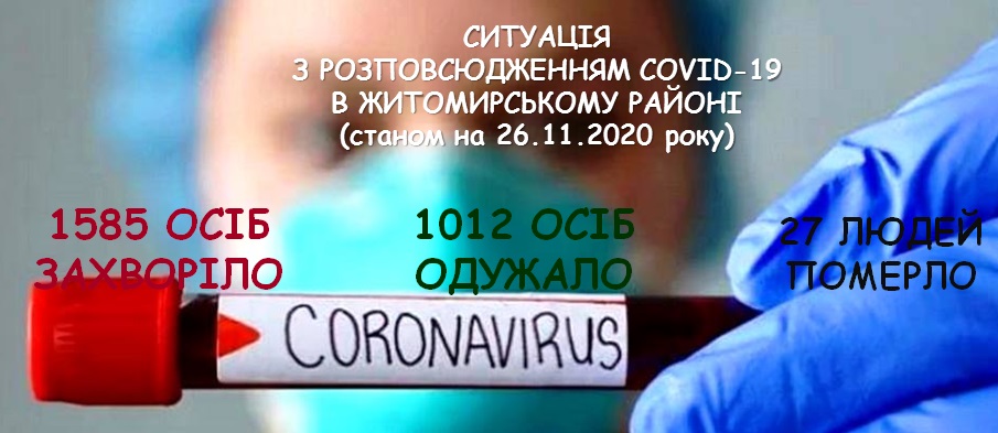 За період спостереження (з квітня 2020 року), станом на 26 листопада, у Житомирському районі зафіксовано 1585 випадків захворювання на коронавірусну хворобу COVID-19. З яких 150…