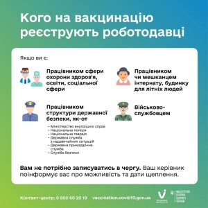 Міністерство охорони здоров’я України інформує, що про щеплення від COVID-19 певних груп осіб можуть піклуватися їх роботодавці, залежно від того, який триває етап вакцинальної кампанії.…