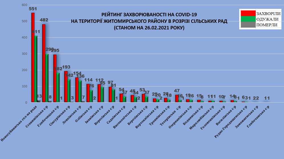 За період спостереження (з квітня 2020 року), станом на 26 лютого 2021 року, у Житомирському районі (у старих межах) зафіксовано 2292 випадки захворювання на коронавірусну…