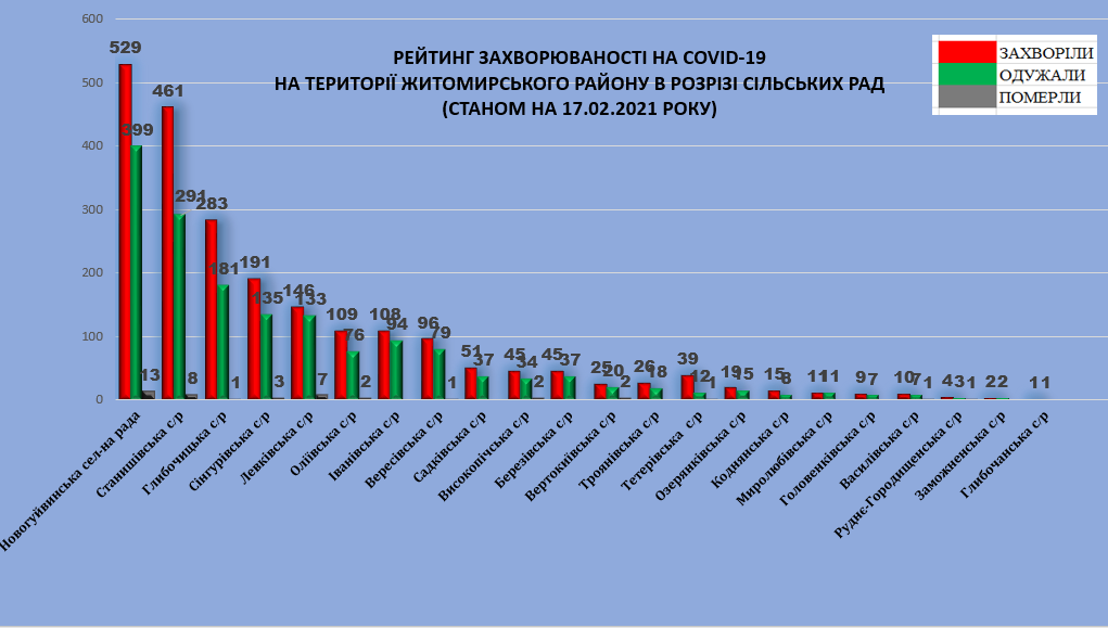 За період спостереження (з квітня 2020 року), станом на 17 лютого 2021 року, у Житомирському районі (у старих межах) зафіксовано 2189 випадків захворювання на коронавірусну…