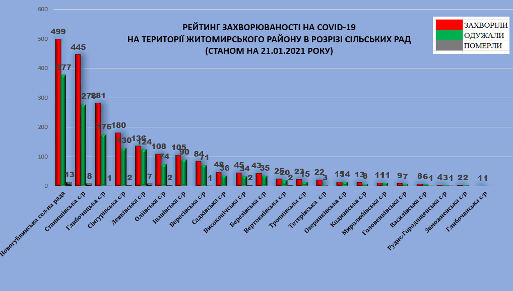 За період спостереження (з квітня 2020 року), станом на 21 січня, у Житомирському районі зафіксовано 2071 випадок захворювання на коронавірусну хворобу COVID-19. За останню добу…