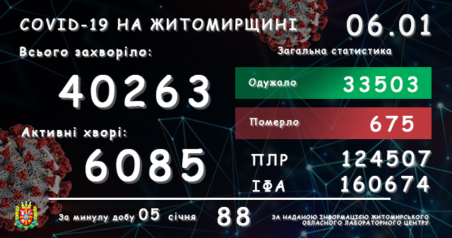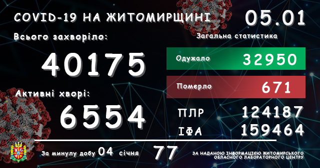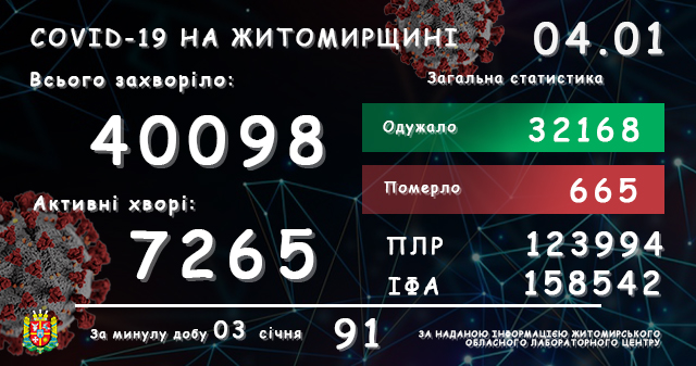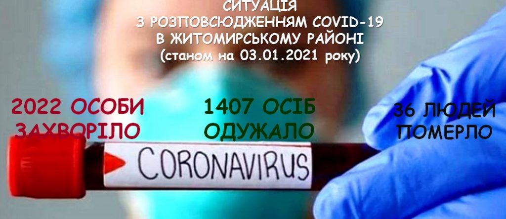 За період спостереження (з квітня 2020 року), станом на 04 січня, у Житомирському районі зафіксовано 2022 випадків захворювання на коронавірусну хворобу COVID-19. З яких 179…