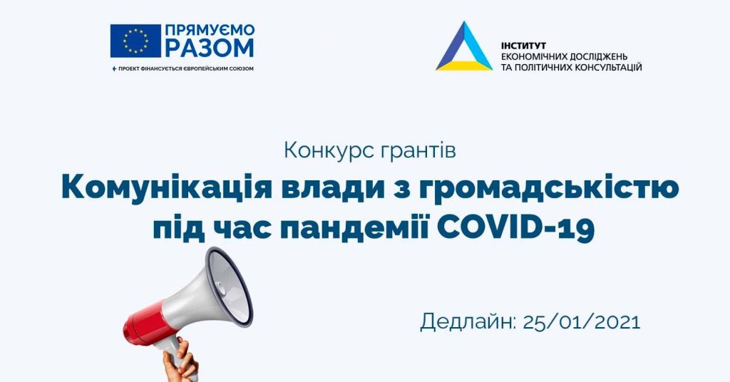 Інститут економічних досліджень та політичних консультацій за підтримки ЄС оголошує конкурс грантів на тему «Комунікація влади з громадськістю під час пандемії COVID-19». Дедлайн – 25…