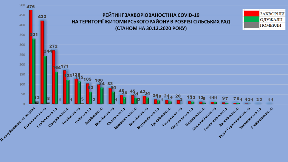 За період спостереження (з квітня 2020 року), станом на 30 грудня, у Житомирському районі зафіксовано 1991 випадок захворювання на коронавірусну хворобу COVID-19. З яких 179…