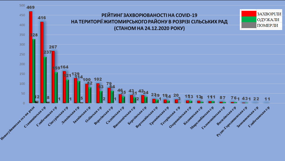 За період спостереження (з квітня 2020 року), станом на 24 грудня, у Житомирському районі зафіксовано 1951 випадок захворювання на коронавірусну хворобу COVID-19. З яких 176…
