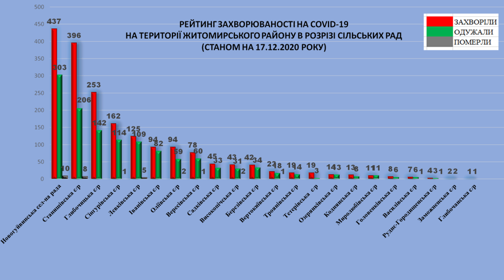 За період спостереження (з квітня 2020 року), станом на 17 грудня, у Житомирському районі зафіксовано 1861 випадок захворювання на коронавірусну хворобу COVID-19. З яких 171…